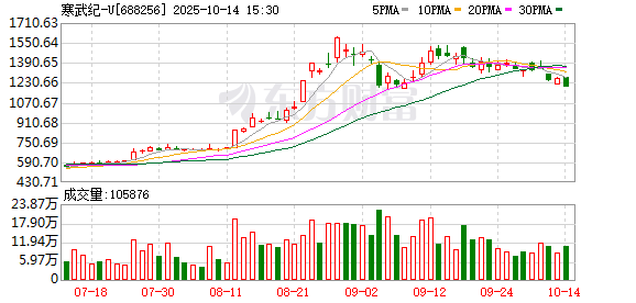 寒武纪-U10月14日大宗交易平台共发生2笔成交,合计成交量0.76万股,成交金额908.96万元。成交价格均为1196.00元。